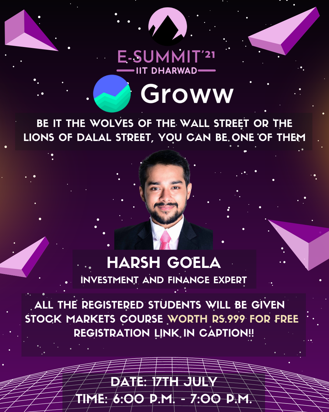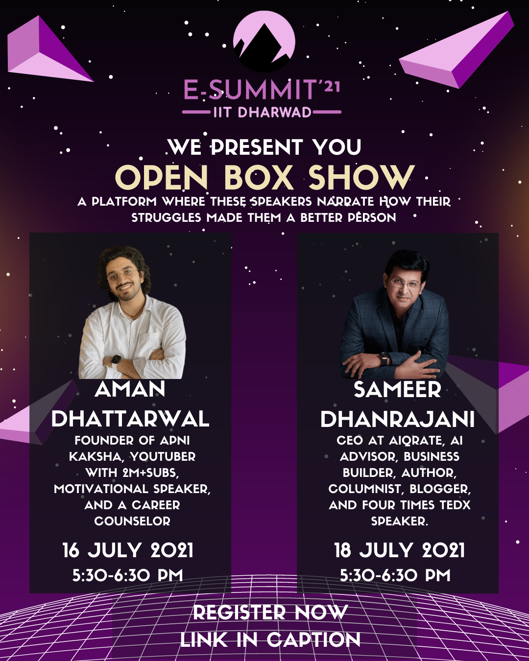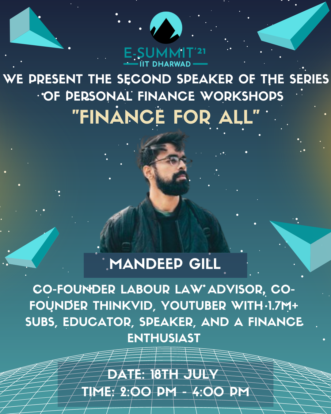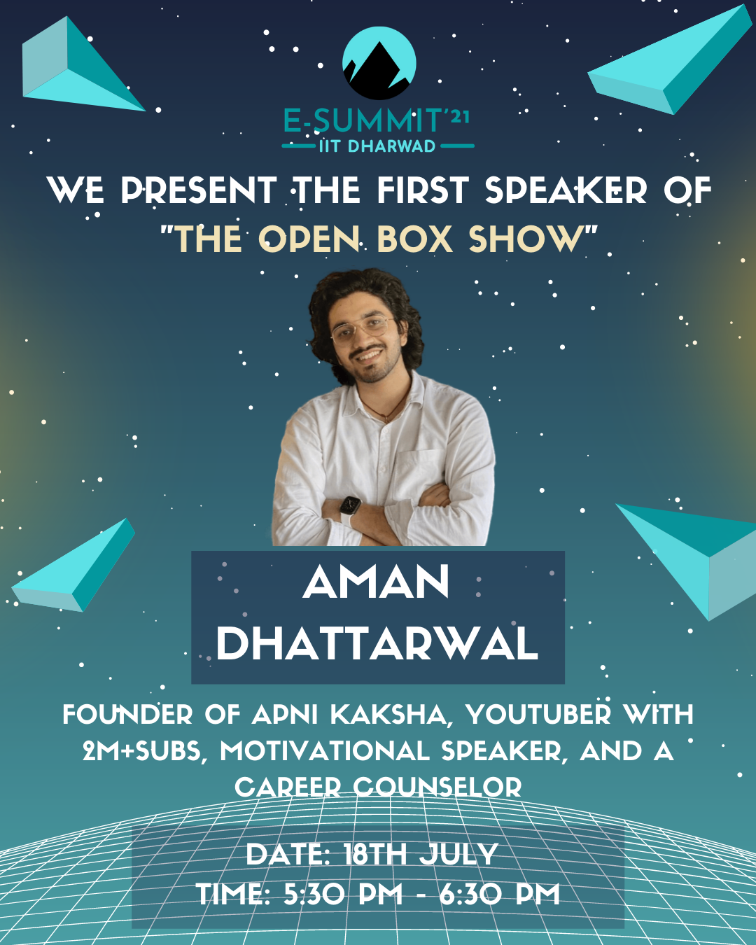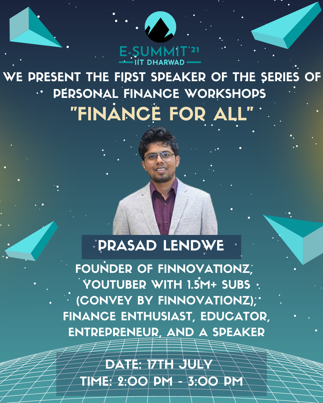 E-Summit'21 is the first entrepreneurial fest hosted by IIC, IIT Dharwad. Featuring well-known personalities, competitions, quizzes, amazing prizes, and much more. E-Summit will provide an insight into many things, empowering students to foster and nurture their creative ideas, innovations, and unique talents.