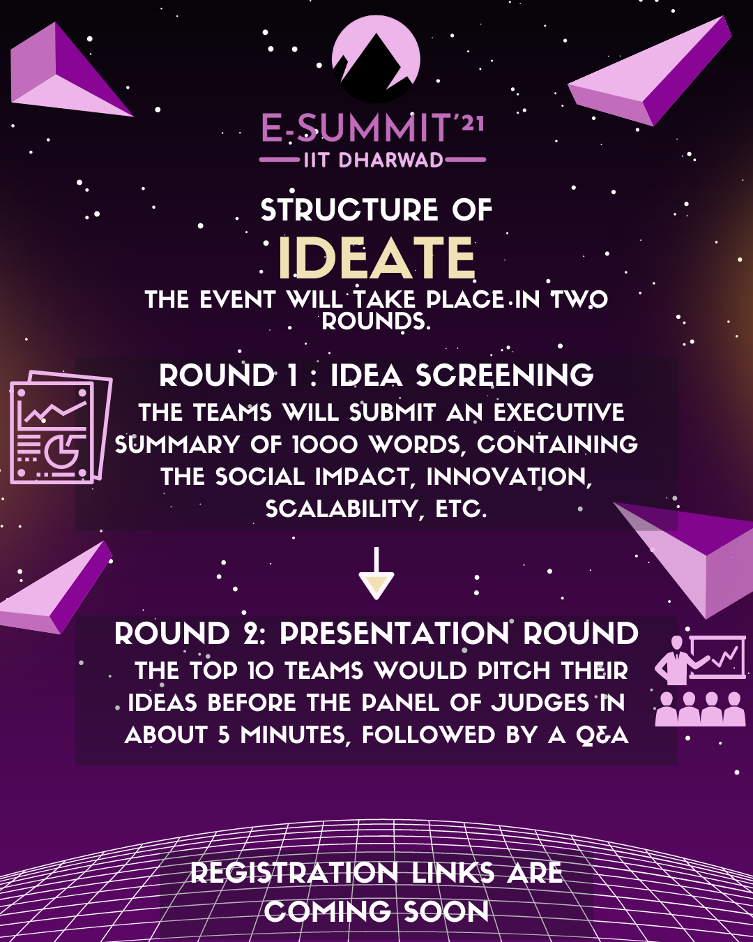 A Pitch Deck Event where you'd get awarded for innovative thoughts, get to group up with a few of your friends and think together for the right idea, and teams with the best ones would move on to the next round. Finally, the best one would get picked out by a panel of judges.